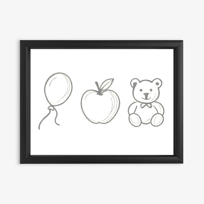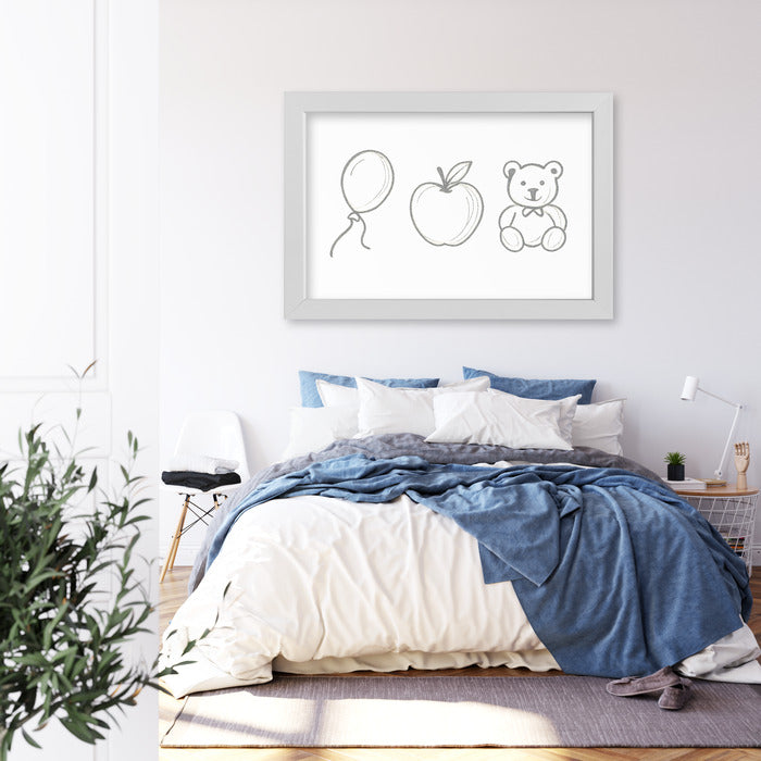 Obraz na płótnie w ramce Balon Jabłko Miś